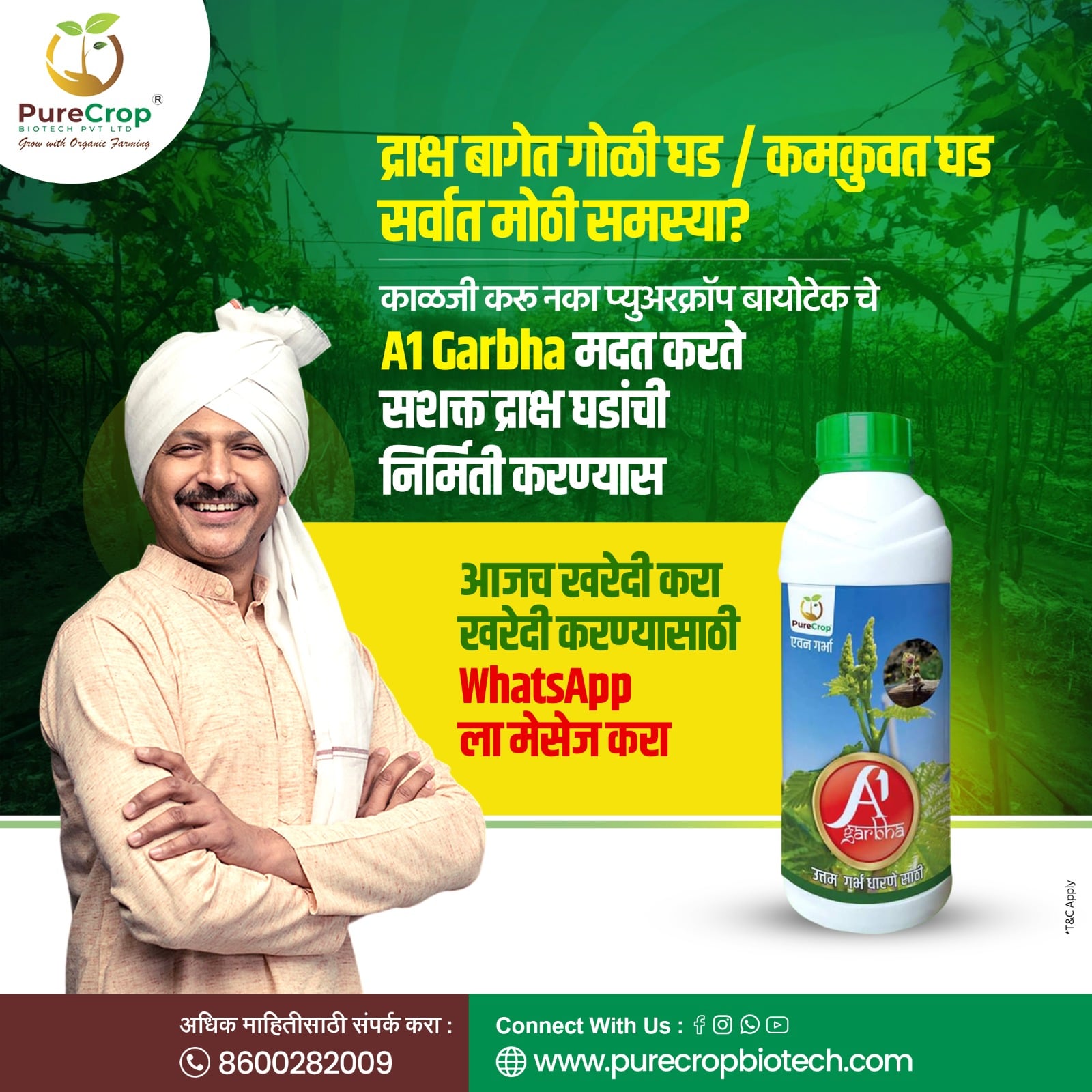 A1Garbha has helped in achieving better control over the growth of grape canes, leading to more uniform production. The canes are healthier, and we’ve noticed better fruit quality and yield. Highly recommended for grape growers.